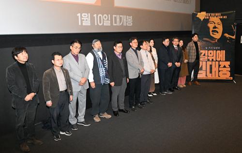 이은 명필름 대표는 이날 오후 \'길위에 김대중\' 언론 시사회가 열린 광주 서구 CGV터미널점을 찾아 \"영화를 통해 그동안 (김대중 대통령에 대해) 왜곡되고 잘 못 알려진 것들이 시정되길 바란다\"라고 밝혔다.