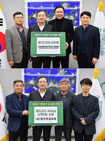 담양군은 전남화물자동차운송사업연합회공제조합과 농업회사법인 (유)참푸른글로벌에서 담양군의 어려운 이웃들을 위해 써달라며 이웃돕기 성금 1000만 원과 400만 원 상당의 돼지고기 400kg를 각각 기탁했다고 전했다.