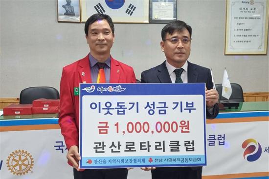 장흥 관산로타리클럽은 지난 19일 김장김치 20상자에 이어 소외된 이웃들을 위해 사용해 달라며 사랑의 성금 100만원을 기부했다.