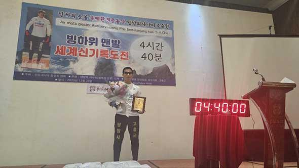 고흥군은 세계적인 국제환경운동가로 활동중인 고흥군 홍보대사 맨발의 사나이 조승환씨가 지난 12월 20일 인도네시아 ‘JAVA PALACE HOTEL’에서 ‘맨발로 얼음 위에 오래 서 있기 4시간 40분 세계신기록 도전’에 본인이 보유하고 있는 4시간 35분을 뛰어넘어 다시 한번 세계신기록을 갱신했다고 밝혔다.