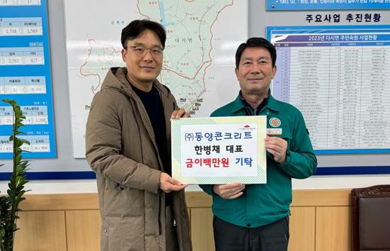 노상수 다시면장은 “동절기 한파로 인해 마음까지 꽁꽁 언 시기에 나눔을 통해 훈훈하고 따뜻한 정을 느낄 수 있도록 해주신 두 대표님께 감사드린다”며 “어려운 이웃들의 심신이 따뜻한 양지에 머무를 수 있도록 겨울철 복지사각지대 해소와 복지자원 발굴에 힘써가겠다”고 말했다.