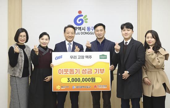 광주 동구는 오비맥주 광주지점에서 돌봄 이웃의 겨울철 난방비 지원을 위해 후원금 300만 원을 기탁했다고 28일 밝혔다.