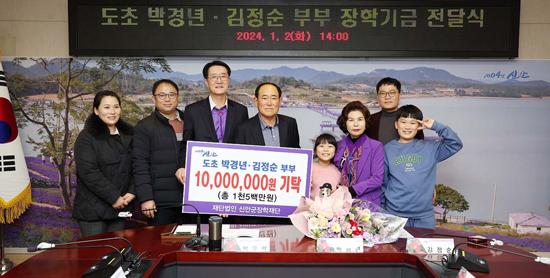 (재)신안군장학재단은 도초면 박경년·김정순 부부가 지난 2일 신안군청을 방문해 1000만 원의 장학금을 기탁했다고 밝혔다.