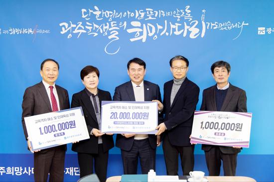 광주희망사다리교육재단이 17일 유탑엔지니어링 최석 회장 등 지역인사들로부터 2200만원의 기부금을 전달받았다.