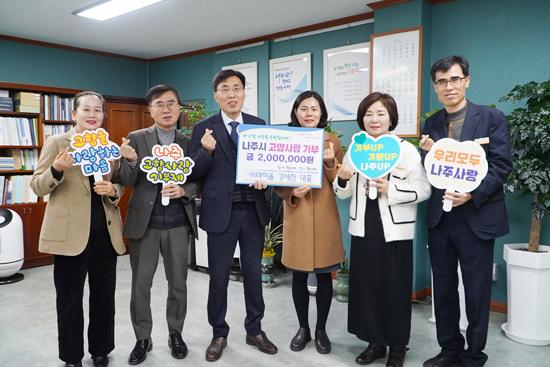 강 대표는 “나주를 사랑하는 마음으로 고향사랑기부에 동참하게 됐다”면서 “지역 발전의 소중한 밑거름으로 쓰이길 바란다”고 말했다.