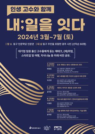 광주 동구를 대표하는 주민 복합문화공간인 동구인문학당에서 오는 23일부터 ‘인생 고수와 함께 내:일을 잇다’를 주제로 하는 청년 특화프로그램을 운영한다고 밝혔다.