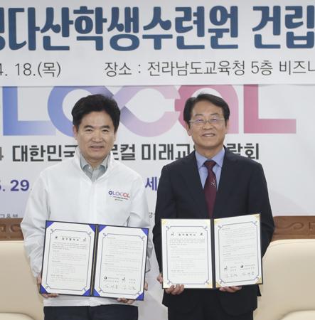 18일 도교육청에 따르면 이날 청사 비즈니스실에서 김대중 교육감과 강진원 강진군수가 가칭 전남교육청다산학생수련원 건립을 위한 업무협약을 체결했다.
