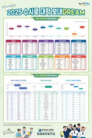 \'2025 수시로 대학 보내DREAM\'은 대학 공개 입시 결과 자료와 축적된 연구회 자료 등의 통계 분석을 통해 서울 주요 대학과 전남대학교, 의치학계열 등 합격 가능 등급과 교과 환산 점수를 예측했다.