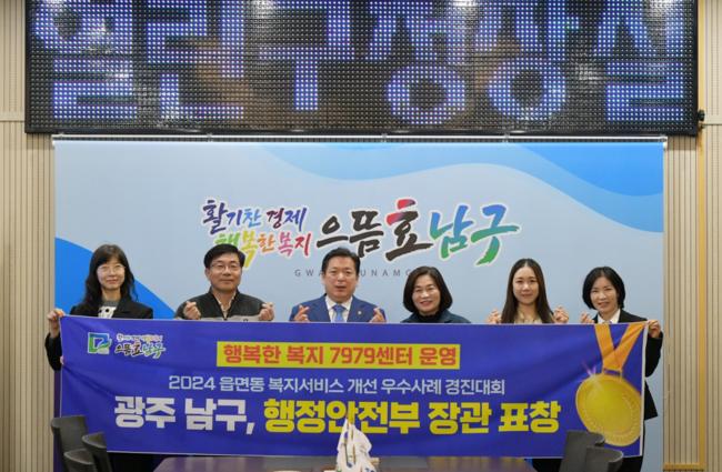 남구는 25일 “이번 경진대회에서 광주에서는 유일하게 행복한 복지 7979센터 사업이 복지 분야 우수사례에 이름을 올렸다”면서 “행안부 장관 표창과 함께 특별교부세 2,200만원을 받는다”고 밝혔다.