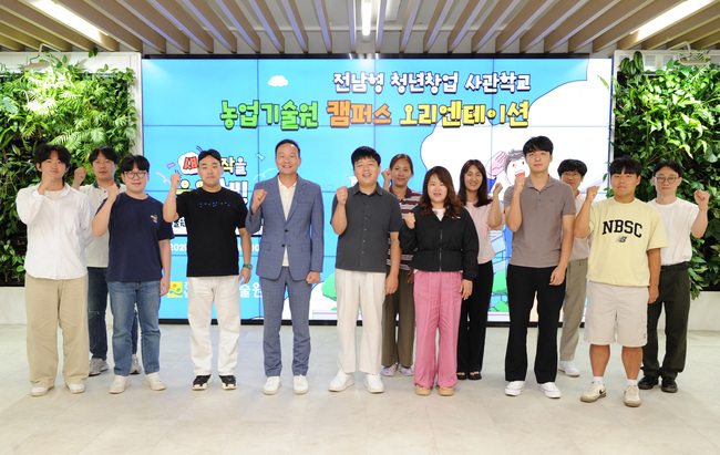 이번 농업기술원 캠퍼스에 입교한 ‘전남형 청년창업 사관학교’ 학생 13명의 창업 아이템은 ▲김민정(에코마인드) AI 기후·환경 학습플랫폼 ▲김종현(지푸드) 균주발효 효소식품 ▲김태호(153버섯농장) 폐배지로 만든 친환경 펠릿연료 ▲박창민(창씨고집) 젠피육포 ▲배지원(프로젝트 비) 체험형 드론 솔루션 ▲염건웅(위즈팜) 스마트 축우관리 시스템 ▲염민지(위젠트) 친환경 에너지 설비 기자재 ▲오승진(팜투글로벌) 오트밀 가공식품 ▲오승욱(미래기술아카데미) 농업용 드론 ▲이명숙(두부이야기) 콩발표식품 ▲장준하 육묘상자 자동세척기 ▲정건식(미음) 스마트 토양분석 디바이스 ▲채두현(밀물주조) 막걸리 제조기술 등이다.