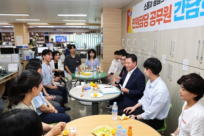 이번 간담회에서 직원들은 그동안 겪었던 다양한 민원 사례와 고충 등에 대해 자유롭고 편안하게 이야기했으며, 김 군수는 직원들의 애로사항을 주의깊게 청취하였다.