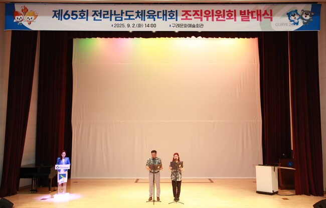 2026년 전남 구례군에서 열리는 전라남도체육대회의 성공적인 유치를 위해 「제65회 전라남도체육대회 조직위원회 발대식」이 지난 2일, 구례문화예술회관에서 성황리에 개최됐다.