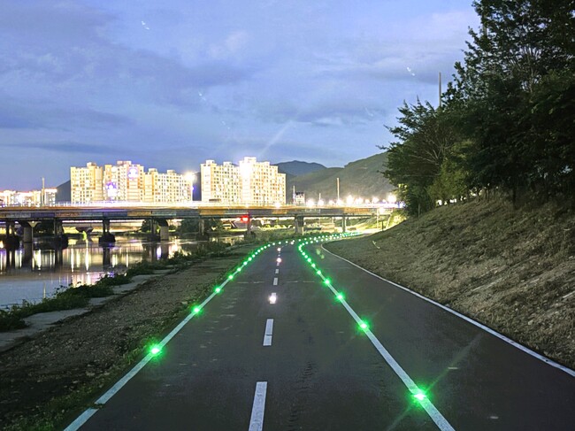 장성군, 황룡강 자전거길에 ‘활주로형 LED 야간 조명’ 설치