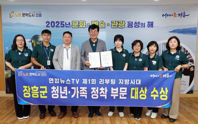 장흥군이 연합뉴스TV에서 주관한 ‘제1회 리부팅 지방시대 대상’시상식에서 청년·가족 정착 부문 대상을 받았다고 밝혔다.