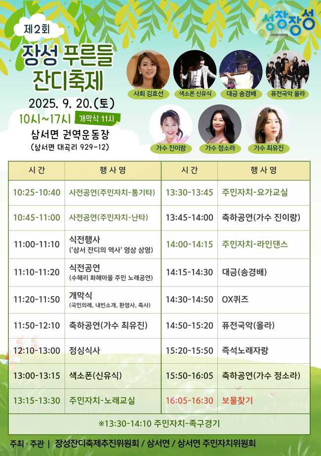 • - ‘제2회 장성 푸른들 잔디축제’ 권역운동장서 개최...공연, 잔디밭 캠핑 등 기대