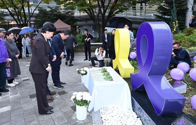한편, 남구는 지난해 백운광장 푸른길 공원 산책로 인근에 세월호와 이태원 참사 희생자를 추모하는 노랑 리본 조형물과 보랏빛 리본 조형물을 설치해 추모 공간으로 조성한 바 있다.