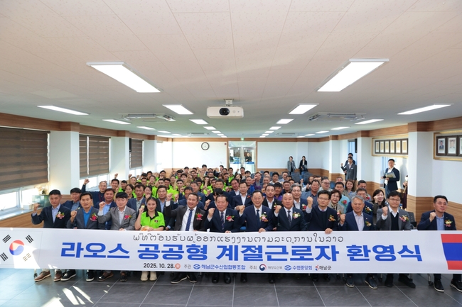 해남군은 지난 27일 라오스 계절근로자 38명의 입국 행정절차를 마치고 지역에 취업을 축하하는 기념식을 가졌다.