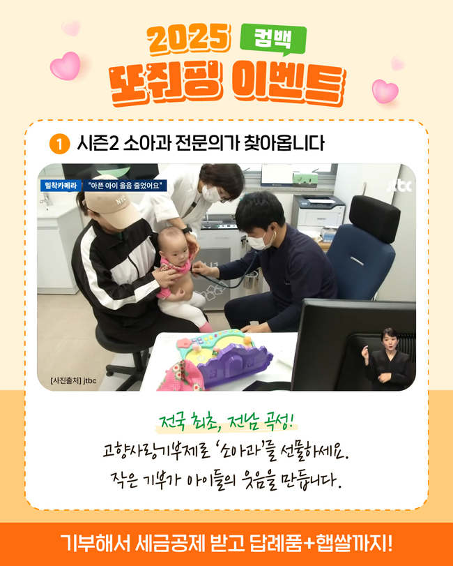 “컴백 또줘핑” 이벤트는 곡성군이 지역 농·축협 및 농협중앙회 곡성군지부와 협력해 고향사랑기부제를 통해 지역 농산물 홍보와 지역문제 해결에 기여하기 위해 마련됐다.