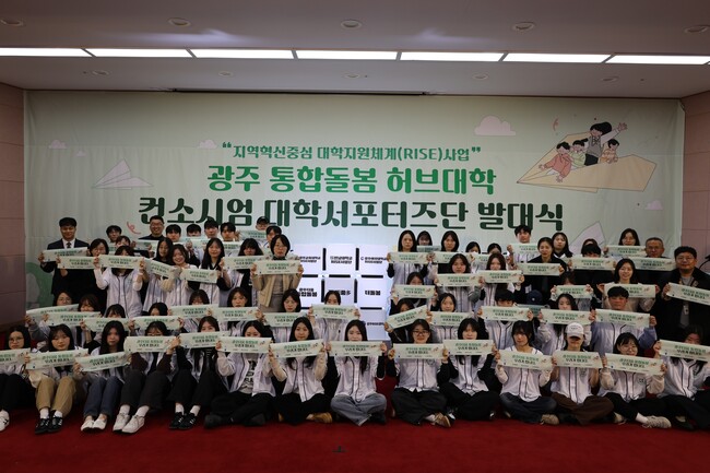 전남대학교 RISE사업단은 지난 6일 전남대 용지관 광주은행홀에서 ‘광주 통합돌봄 허브대학 서포터즈’ 발대식을 개최하고, 지역 돌봄 전문인력 양성과 대학–지역사회 협력 기반의 통합돌봄 실천을 본격화했다.
