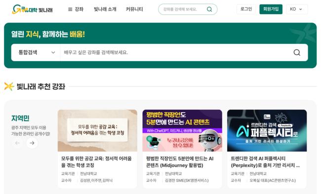 전남대학교 RISE사업단은 ‘빛나래’를 통해 광주광역시에 거주하는 지역민·재직자·대학생을 대상으로 한 공개형 온라인 강좌를 지속적으로 제공할 예정이다.