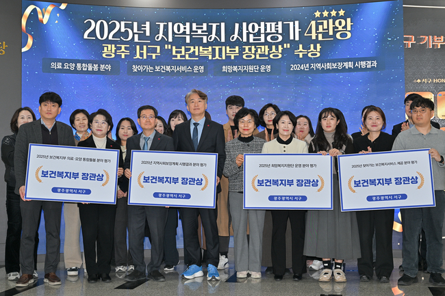 서구는 보건복지부가 실시한 2025년 지역복지사업 평가에서 ▲의료·요양 통합돌봄 지원 ▲찾아가는 보건복지서비스 운영 ▲희망복지지원단 운영 ▲지역사회보장계획 시행결과 등 4개 분야에서 모두 우수 자치구로 선정되며 4관왕의 쾌거를 이뤘다.