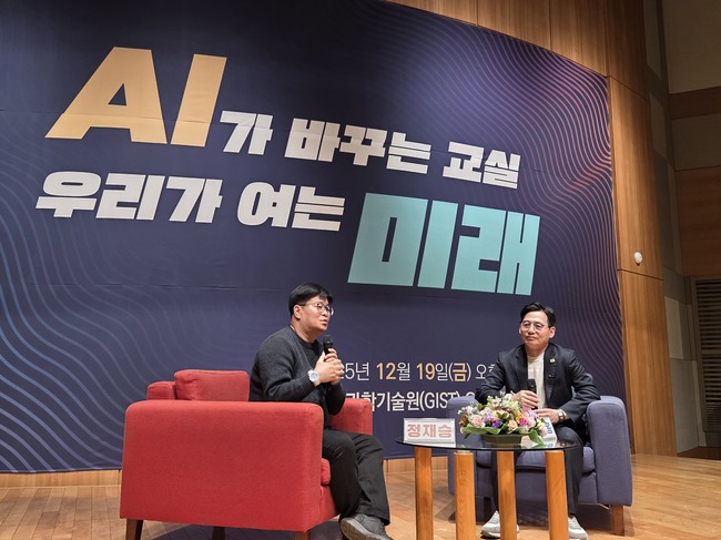 이날 열린 토크콘서트에서 정재승 KAIST 교수와 정성홍 전 과학교사는 'AI가 바꾸는 교실 우리가 여는 미래'라는 주제로 이야기했다. 두 전문가는 입을 모아 "AI 시대 일수록 교육의 중심을 기술이 아닌 '사람'에게 두어야 한다"고 강조했다.