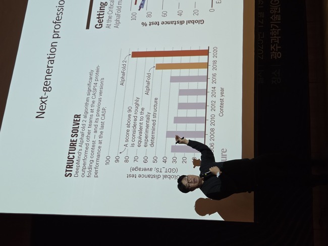 뇌인지과학 분야 최고 석학인 정재승 한국과학기술원(KAIST) 교수가 그에게 과학의 재미를 처음 일깨워준 스승인 정성홍 전 과학교사와 40여 년 만에 한자리에 앉아 AI시대 미래교육의 방향을 이야기하는 토크콘서트가 지난 19일 광주과학기술원(GIST) 오룡관에서 열렸다.
