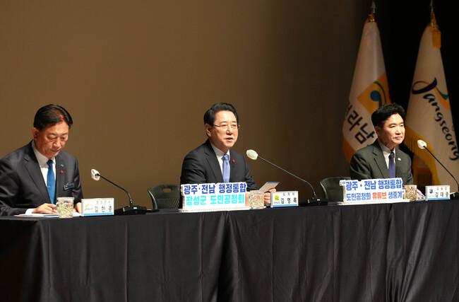 김영록 지사는 “영암에 이어 장성에서 공청회를 열어 도민의 목소리를 현장에서 직접 듣고 있다”며 “두 차례 공청회를 통해 제기된 의견을 종합해 군 단위에서도 실질적으로 체감할 균형발전형 행정통합 방안을 구체화하겠다”고 말했다.