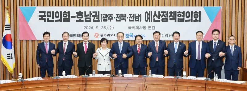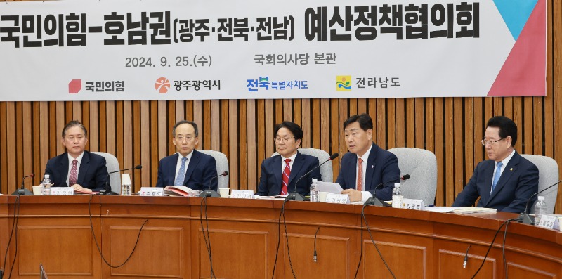 이날, 국민의힘은 전북특별자치도, 광주광역시, 전라남도와 함께 예산정책협의회를 열고, 2025년도 국가예산 확보 및 지역 발전을 위한 주요 현안들을 논의했다.