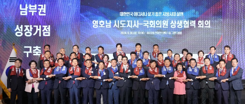 전라남도는 지난 30일 영호남 시도지사 협력회의가 서울 한국경제인협회(FKI타워 컨퍼런스센터)에서 지역 국회의원 초청 상생협력 회의를 개최하고, 영호남 균형발전을 위한 협력을 다짐했다고 밝혔다.