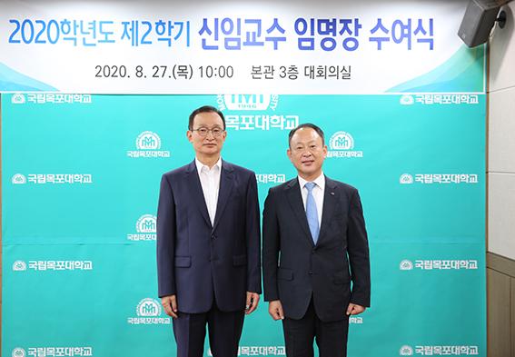 박민서 총장(왼쪽)과 김동섭 교수. /목포대 제공