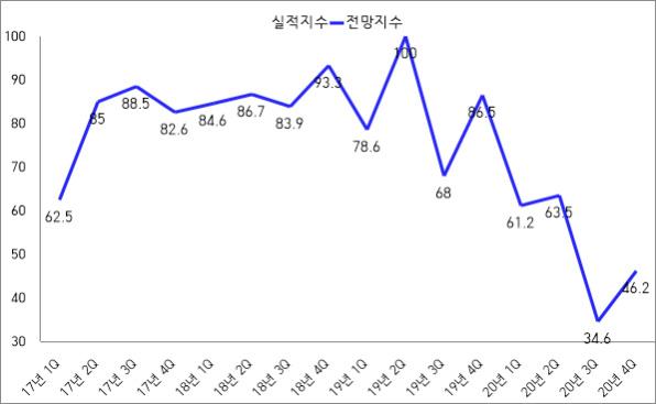 이는 3분기 34.6에 비해 11.6p 상승한 수치이지만 전분기가 역대 최저치인 점을 감안하면 의미를 부여하기 어려우며, 코로나19 재확산에 따른 경기침체 지속을 주요 원인으로 꼽았다.