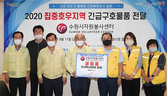 수원시자원봉사센터는 수해 피해지역 지원을 위해 500만 원 상당의 생필품을 광양시에 전달했다.