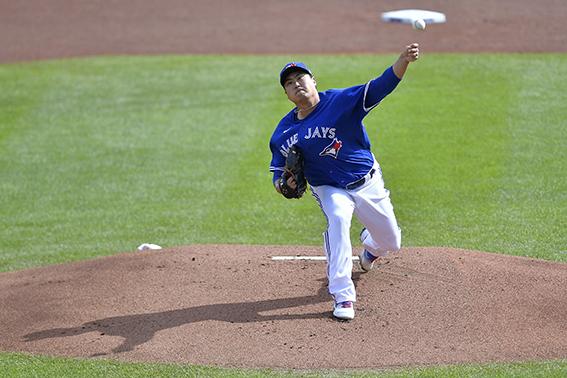토론토 블루제이스의 류현진이 14일(한국시간) 미국 뉴욕주 버펄로의 샬렌필드에서 열린 2020 메이저리그(MLB) 뉴욕 메츠와의 경기에 선발 등판, 역투하고 있다.