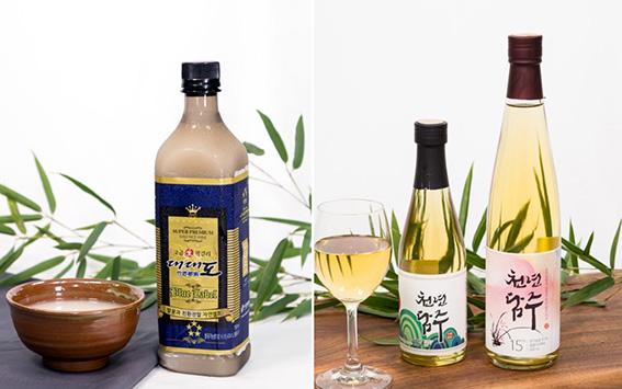 농식품부 주관 2020년 대한민국 우리술 품평회에서 대상과 최우수상을 수상한 전남 담양 ㈜죽향도가의 '대대포'(왼쪽)와 '천년담주'. (사진=전남도 제공)