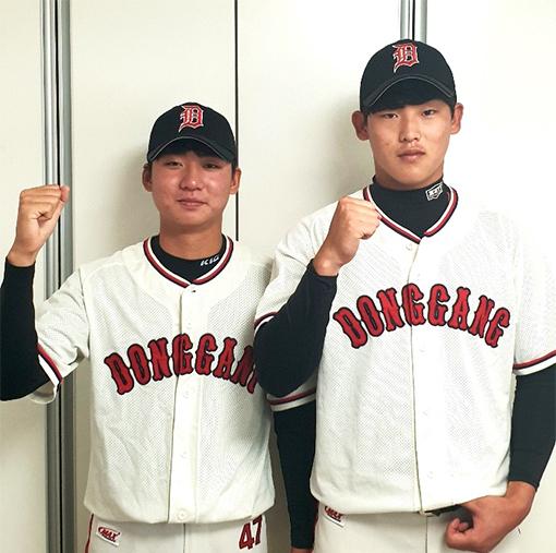 프로야구 신인 드래프트에서 각각 두산·SK에 지명된 동강대 야구부 투수 김주완(왼쪽), 조정호. /동강대학교 제공