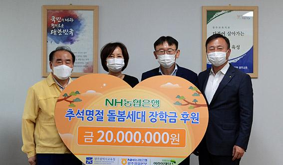 광주시교육청이 NH농협은행 광주영업본부로부터 ‘추석명절맞이 돌봄이웃 장학금’ 2000만원을 23일 전달받았다.