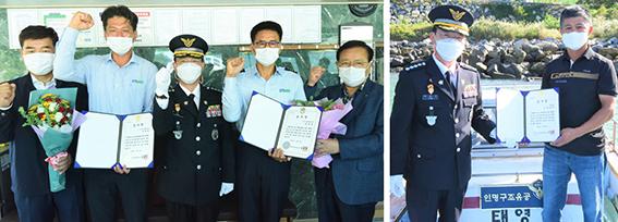 완도해양경찰서는 지난 5일 추석연휴 기간 해상투신자 구조와 전복선박 승선원 구조 등 인명구조에 혁혁한 공을 세운 구조자 3명에게 감사장과 인명구조 명패를 수여했다고 밝혔다.