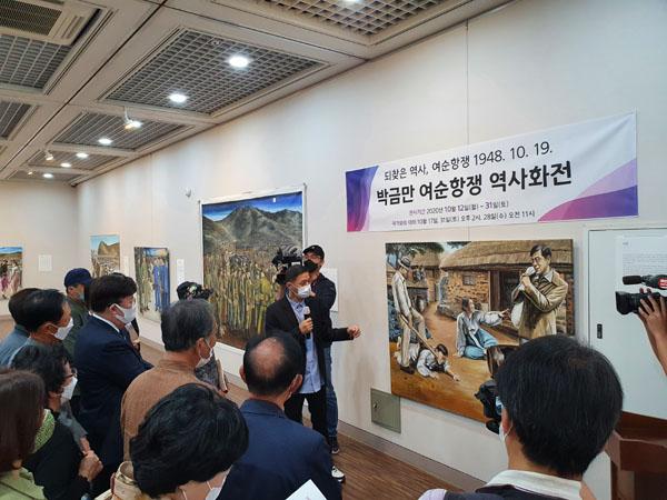 박 작가의 작품 중 사건때 목숨을 잃은 할아버지의 모습을 담은 그림도 전시됐으며, 여순사건의 시작부터 끝까지 여수와 순천, 구례, 보성 등지에서 발생한 사건들을 담았다.