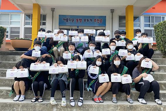 학생들은 방과후 시간에 안좌중 응원 키트를 직접 주문 및 제작하고 이를 안좌면사무소, 안좌우체국, 안좌소방서, 팔금면사무소, 팔금우체국에 직접 전달하는 활동을 통하여 더불어 살아가는 삶의 중요성을 홍보했다. 또한 지역 주민들의 말동무가 되어드려 학교 및 지역 사회에 바라는 점과 하고 싶은 말을 바탕으로 롤링페이퍼를 작성하는 활동도 함께 진행했다.
