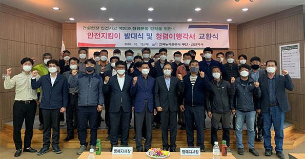 한국농어촌공사 무안·신안지사는 지난 13일 오후2시 지사 회의실에서 현재 시행 및 감리중인 사업지구(팽마당 외 23지구) 공사감독 및 시공회사 현장대리인 38명과 함께 건설현장 안전지킴이 발대식 및 청렴이행각서 교환식을 실시했다.
