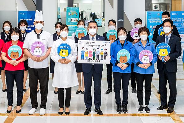 김재규 전남지방경찰청장으로부터 지명을 받은 송종욱 행장은 본점 경비업무, 환경미화, 영양배식 필수노동자들에게 감사 인사를 전하며 캠페인을 이어갔다.