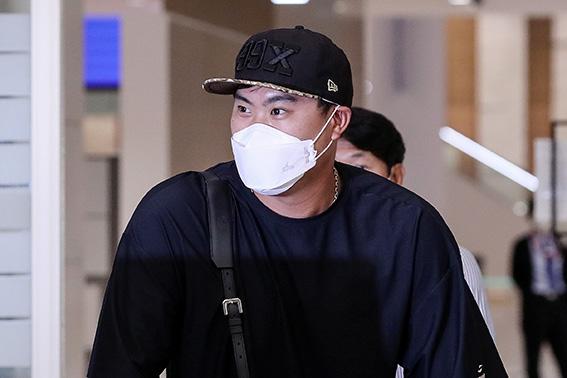 토론토 블루제이스에서의 첫 시즌을 끝낸 류현진이 2일 오후 인천국제공항 제2터미널을 통해 귀국하고 있다.