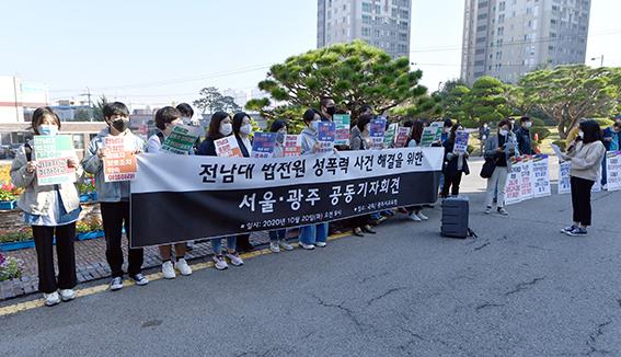 공공운수노조 전국대학원생노동조합지부와 광주여성 단체 등은 20일 "전남대학교가 법학전문대학원에서 발생한 성폭력 문제를 외면하고 있다"며 공개사과와 재발방지 대책 마련을 촉구했다.
