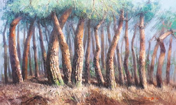 척박한 땅에 뿌리를 박고 생의 연륜을 곧게 드러내는 자작나무는 배삼수의 의지를 닮았다. 그는 하늘을 향해 나아가는 자작나무처럼 병마와 고난을 물리치면서 묵묵히 화가의 길을 간다. 구부러지고 휘어져 조화를 이루는 소나무들은 그의 수용의 표출이다. 그는 시간이 흐를수록 화단에서 순연의 푸르름을 지닌 우람한 소나무로 서 있을 것이다.