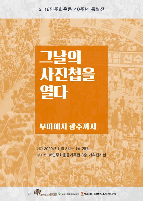 광주시 5·18민주화운동기록관이 부마재단과 부산민주공원, 민주화운동기념사업회 등과 공동으로 3일부터 29일까지 5·18기록관 기획전시실에서 5·18민주화운동 40주년 특별전 ‘그날의 사진첩을 열다 ; 부마에서 광주까지’를 개최한다.