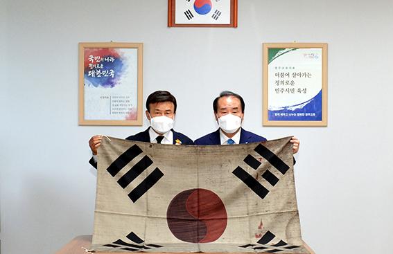 광복회 김원웅 회장은 대한민국 임시정부의정원태극기 사본을 광주시교육청에 전달하며 "일제강점기 항일운동정신을 기억하고 계승하는 데 광주시교육청이 힘써 주길 바란다"고 말했다.