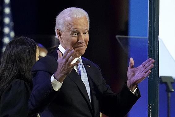 조 바이든 미 대통령 당선인이 7일(현지시간) 델라웨어주 윌밍턴에서 대통령 당선인으로서 첫 연설을 하고 있다. 2020.11.8