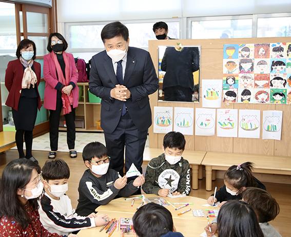 지난 6일 돌봄교실 현장 둘러보는 장석웅 전남교육감. (사진 제공 = 전남도교육청)