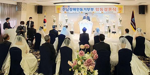 어려운 사정으로 결혼식을 올리지 못한 전남지역 장애인 동거부부 9쌍이 화촉을 밝혔다.